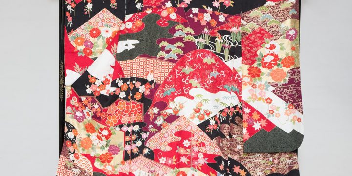 【振袖11】黒紅x唐紅x青鈍x-/花柄x松x海 〈126〉